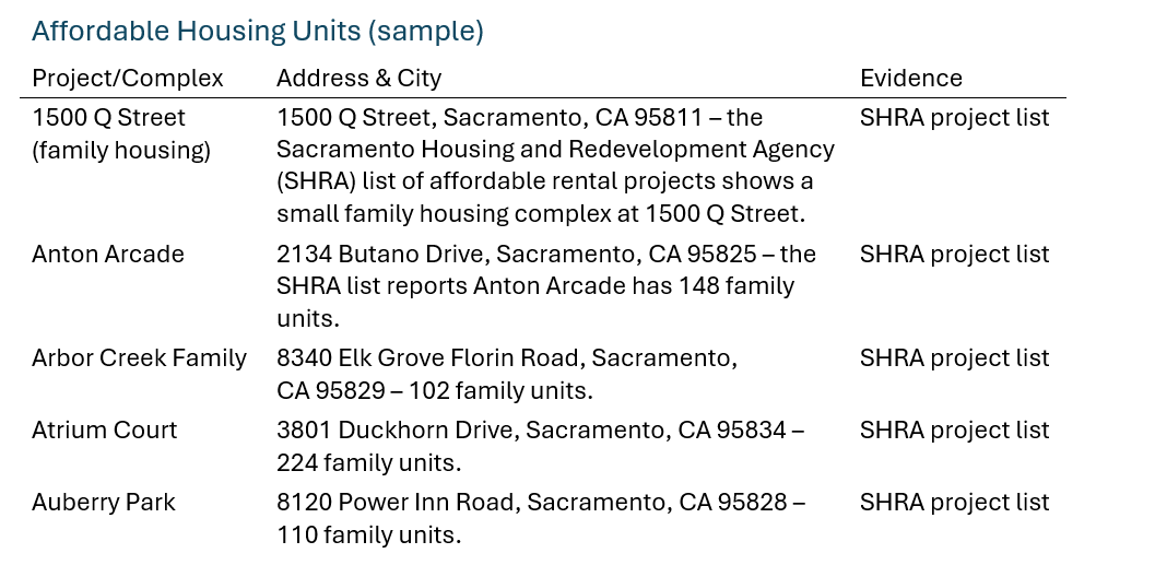 -Repeat steps 4.2‑4.4 for each of the affordable housing addresses listed above.