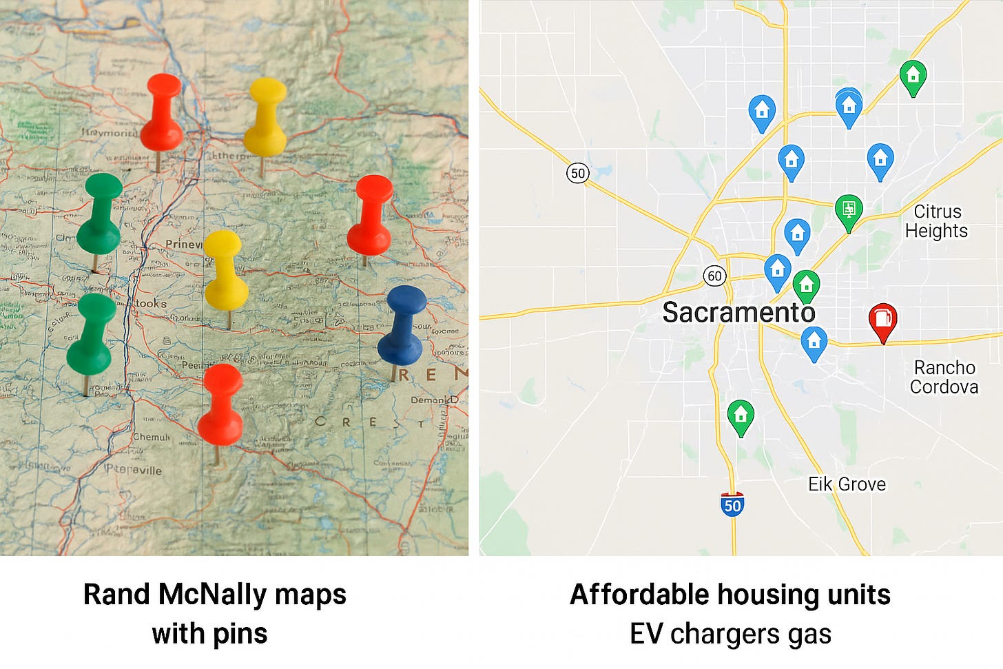With these steps, you can create a multi‑layered Google Map that clearly shows affordable housing projects, EV chargers and gas stations in Sacramento County.