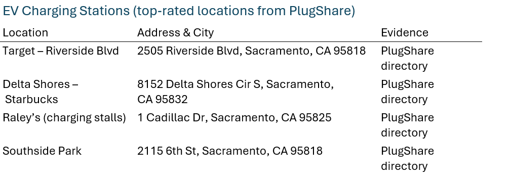 -For each EV charger location (e.g., 2505 Riverside Blvd), search the address in the search bar, click the pin, then click “Add to map”.